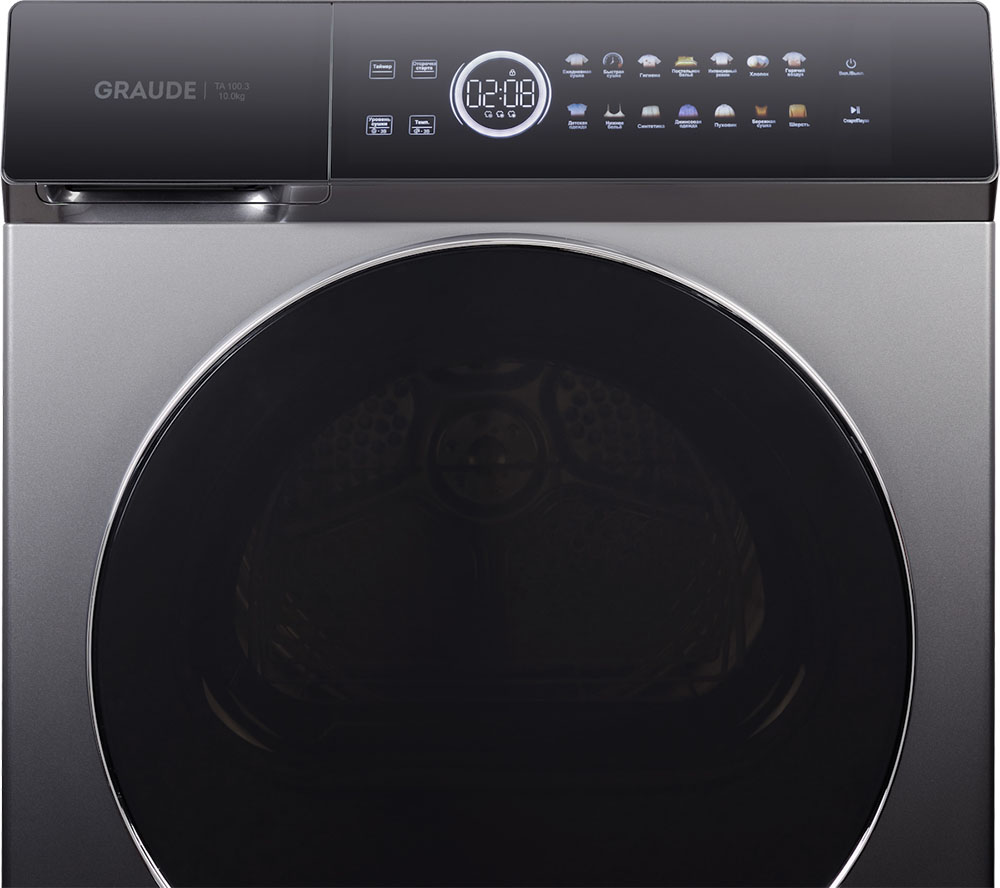 Сушильная машина Graude предназначена для домашнего использования, поэтому имеет стандартные габариты и большое разнообразие программ. Так как она устанавливается отдельно, нужно заранее найти достаточно места в помещении. Особенности, на которые нужно обратить внимание при размещении: возможность установки в колонну. Колонна — это название для совместной установки со стиральной машиной друг на друга, обычно для этого нужен специальный крепежный элемент.