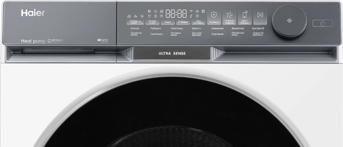 Элементы на панели управления сушильной машины служат для выбора программы сушки, для регулировки параметров работы, для задания дополнительных опций. Большинство сушильных маши оборудовано поворотными переключателями: с их помощью можно легко выбирать программу сушки — по остаточной влажности, по типу ткани, по виду изделий, по времени. Кнопки предназначаются для добавления к программе дополнительных опций: они могут быть как обычными, так сенсорными — в последнем случае все варианты выбора отображаются на дисплее, и возможности управления становятся более удобными и гибкими.