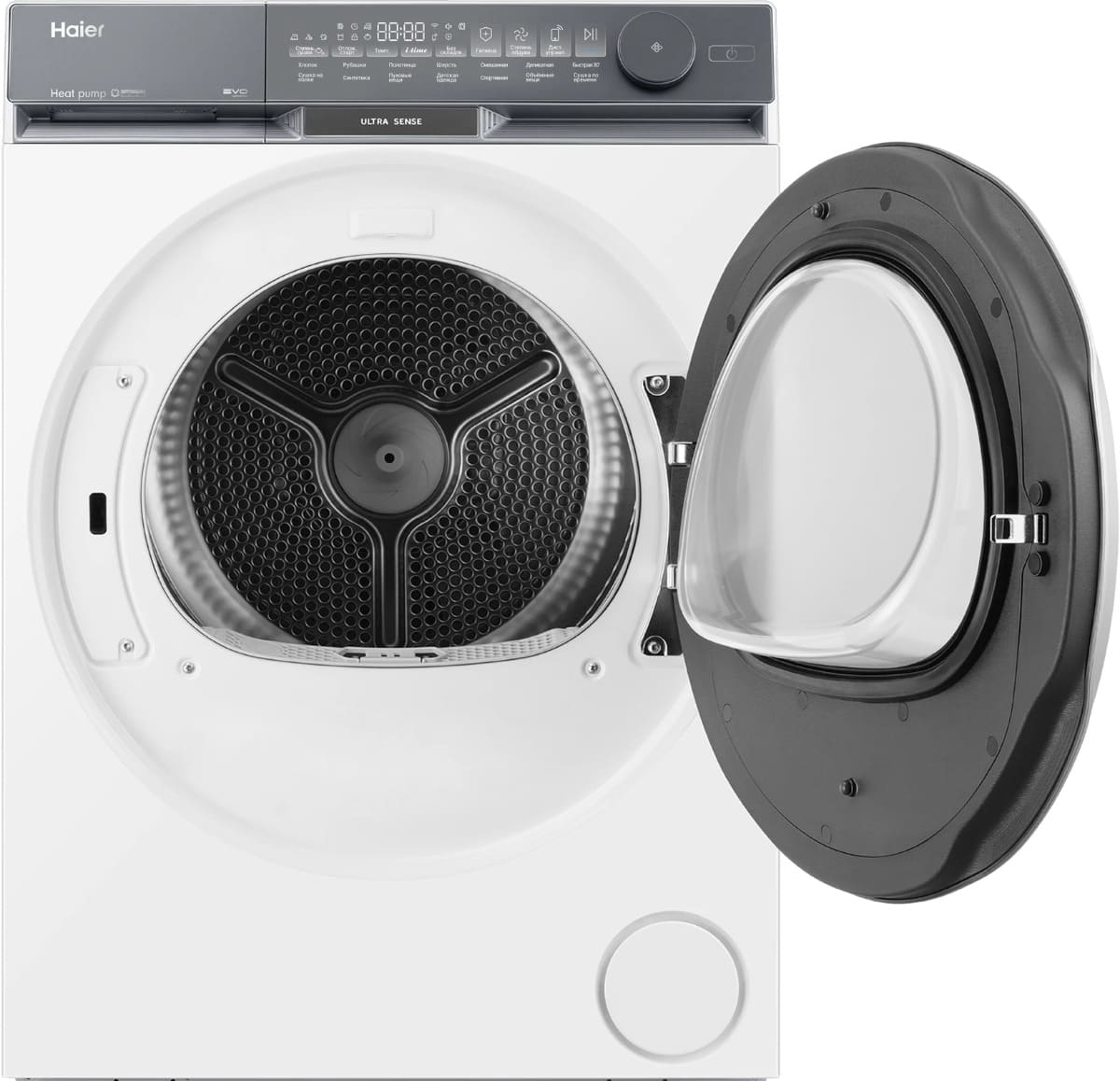 Тип сушки белья в данной модели — тепловой насос. Благодаря этому воздух поступает в барабан уже теплым, что ускоряет работу.