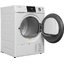 - Тепловой насос — поступающий внутрь воздух нагревается, что ускоряет и улучшает эффективность сушки. Затем он проходит через конденсационный отдел, отдает влагу и сухим повторно возвращается в барабан.