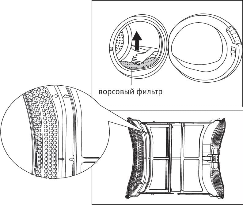 Заполнения ворсового фильтра / необходимости смены фильтра