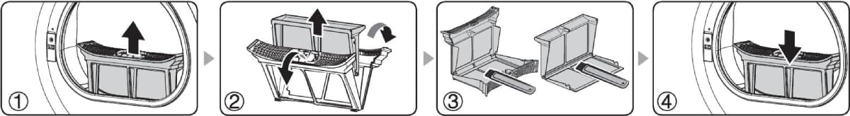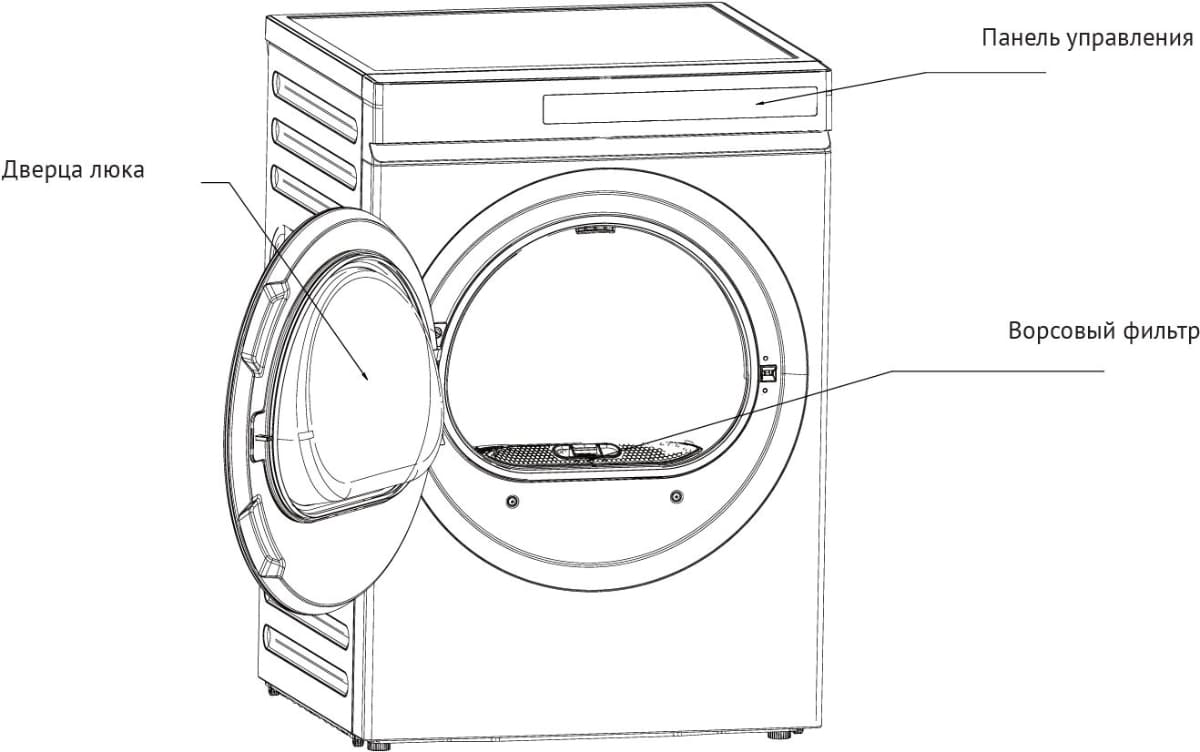 Форма дверцы у сушильных машин может быть и круглой, как у стиральных, и прямоугольной. Для сушилок, в отличие от стиральных машинок, несущественно, будет ли дверца прозрачной: целый ряд моделей выпускается с полностью глухими дверцами, а у некоторых устройств прозрачной делается только верхняя половины дверцы, а в нижней размещается фильтр с легким доступом для быстрой очистки. Прямоугольные дверцы, так же как и глухие, позволяют сразу отличить сушильную машину от стиральной. Перенавешивание дверцы предусмотрено во многих сушильных машинах и может производиться силами пользователя.