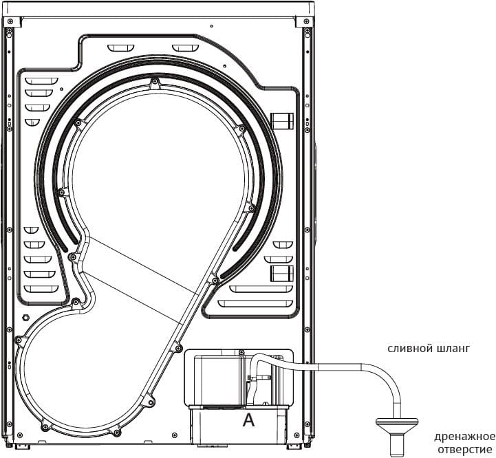 - Тепловой насос — поступающий внутрь воздух нагревается, что ускоряет и улучшает эффективность сушки. Затем он проходит через конденсационный отдел, отдает влагу и сухим повторно возвращается в барабан.