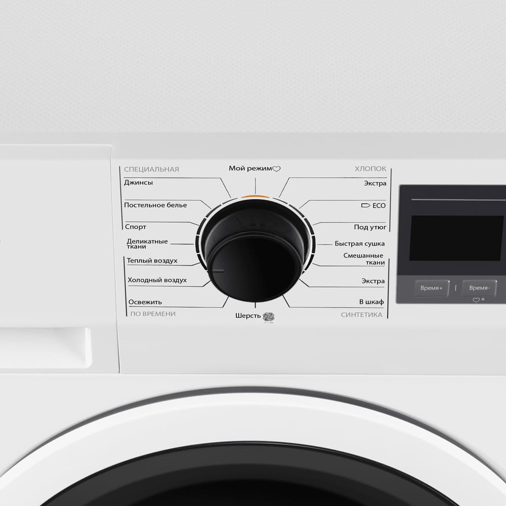 Элементы на панели управления сушильной машины служат для выбора программы сушки, для регулировки параметров работы, для задания дополнительных опций. Большинство сушильных маши оборудовано поворотными переключателями: с их помощью можно легко выбирать программу сушки — по остаточной влажности, по типу ткани, по виду изделий, по времени. Кнопки предназначаются для добавления к программе дополнительных опций: они могут быть как обычными, так сенсорными — в последнем случае все варианты выбора отображаются на дисплее, и возможности управления становятся более удобными и гибкими.