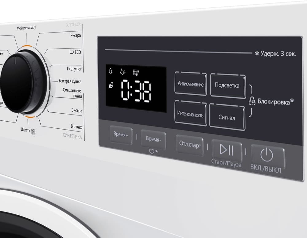 Функция сохранения в памяти настроек пользователя присутствует во многих моделях крупных брендов. Она очень удобна, если вы постоянно пользуетесь одной и той же программой, выбирая для нее одинаковые дополнительные опции — например, отсрочку старта, степень и температуру сушки, антисминание. Все эти настройки можно сохранить для программы как настройки по умолчанию, и при следующем ее выборе они будут использованы автоматически. Для сохранения настроек, как правило, используется специальная кнопка на панели управления: для конкретной модели порядок сохранения приводится в инструкции.