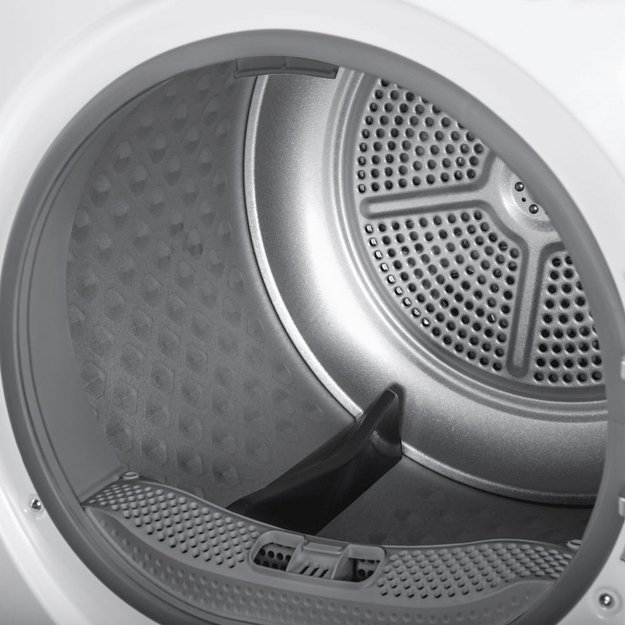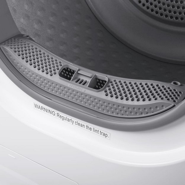 Электронное управление удобно и понятно для людей разного поколения. Контролировать процесс можно с помощью дисплея, на который выводится основная информация. В вашем распоряжении индикаторы: времени до окончания программы, заполнения емкости для конденсата/необходимости опорожнения резервуара, заполнения ворсового фильтра/необходимости смены фильтра, активной функции защиты от детей/блокировки панели управления, нарушений в работе. Вы можете использовать таймер, чтобы отложить запуск на подходящее время. Когда машинка прекратит работу, вы услышите специальный сигнал. Другие полезные опции, которые помогут вам: сенсор влажности.