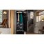 Шкаф легко открыть без внешних ручек — слегка постучите костяшками пальцев по двери. В выключенном виде на фронтальной поверхности не виден сенсорный дисплей, поэтому интеграция в любое пространство не составит проблем. Помимо панели управления можно воспользоваться приложением на смартфоне, чтобы запустить или скорректировать программу.