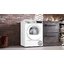 Особенности управления включают сенсорный контроль сушки DUO-Tronic и программу AutoDry. Благодаря сенсору влажности, машина автоматически определяет оптимальное время сушки. Также есть таймер отсрочки старта до 24 часов и сигнал окончания хода программы. Самоочистка конденсатора обеспечивает длительный срок службы устройства. Дизайн выполнен в классическом белом цвете, что делает её универсальной для любого интерьера. Панель управления и барабан выполнены из нержавеющей стали, что обеспечивает долговечность и устойчивость к коррозии. Дверца люка также белого цвета, а её угол открывания составляет 90 градусов для удобства загрузки белья.