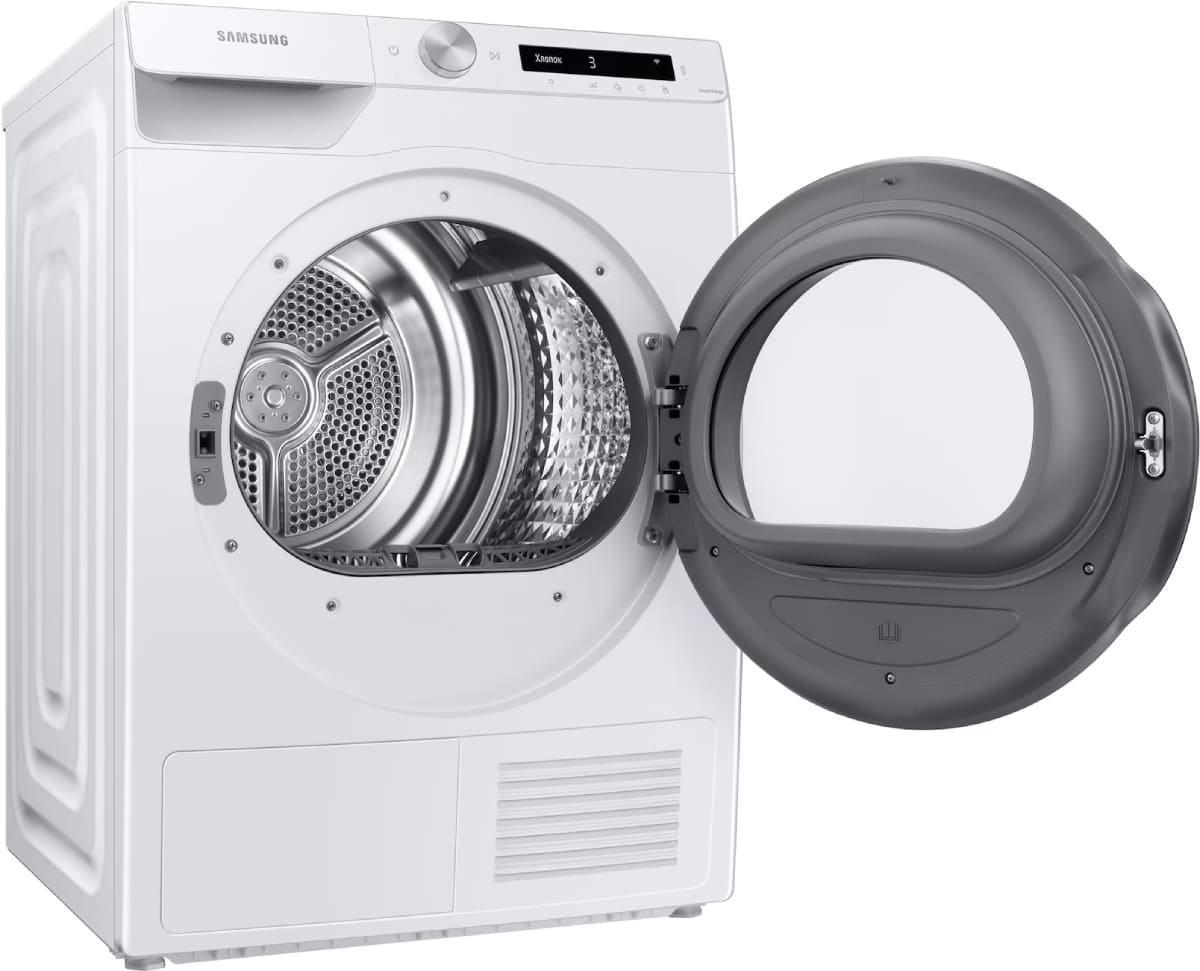 Тип сушки белья в данной модели — тепловой насос. Благодаря этому воздух поступает в барабан уже теплым, что ускоряет работу. Специальный компрессор Heat Pump помогает вам экономить электроэнергию.