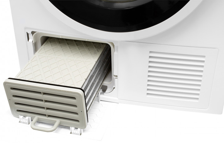 Сушильные машины конденсационного типа, как и устройства с тепловым насосом, не требуют присоединения к системе вентиляции и подключаются только к электросети. Конденсат, который удаляется из загруженного белья, стекает в специальный контейнер. Он расположен так, чтобы его извлечение было максимально удобным — например, в верхней части корпуса, там, где у стиральных машин находится лоток для порошка. Опустошать этот контейнер необходимо вручную — как правило, после завершения каждого цикла работы. О необходимости слива конденсата предупреждает специальный индикатор на панели управления.