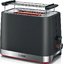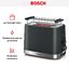 Стильный тостер Bosch имеет компактный корпус на устойчивых ножках, благодаря которым не пошатывается, даже если хлеб выпрыгивает вверх в конце приготовления. Основной материал, из которого изготовлен прибор, — пластик. Его главный оттенок — черный. Простое и понятное механическое управление позволяет быстро разобраться во всех функциях. Простое и понятное электронное управление позволяет быстро разобраться во всех функциях. На корпусе расположены кнопочные+поворотные переключатели для изменения настроек.