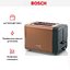 Стильный тостер Bosch имеет компактный корпус на устойчивых ножках, благодаря которым не пошатывается, даже если хлеб выпрыгивает вверх в конце приготовления. Основной материал, из которого изготовлен прибор, — нержавеющая сталь. Простое и понятное механическое управление позволяет быстро разобраться во всех функциях. Простое и понятное электронное управление позволяет быстро разобраться во всех функциях. На корпусе расположены кнопочные+поворотные переключатели для изменения настроек.