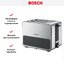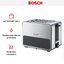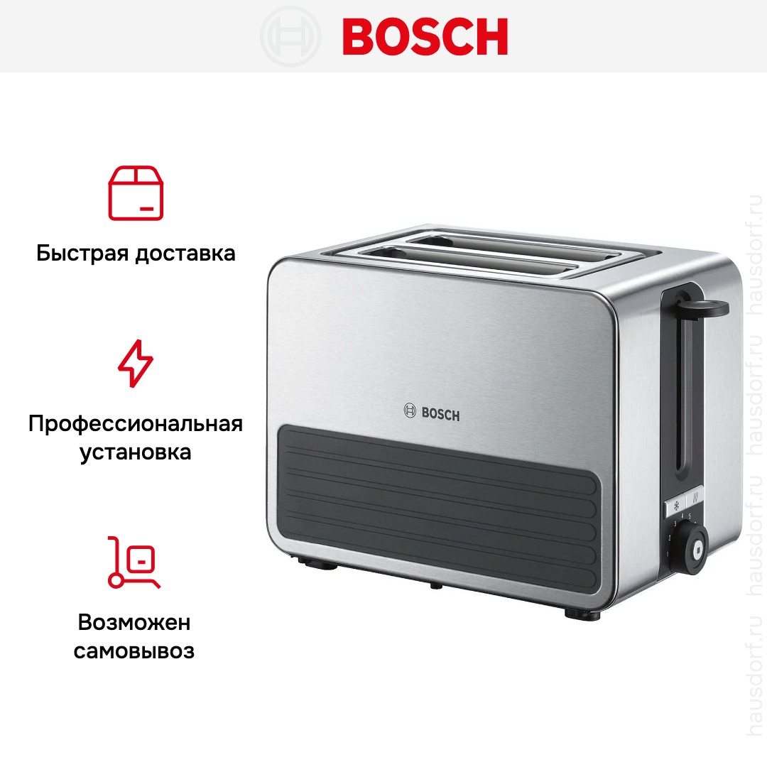 Стильный тостер Bosch имеет компактный корпус на устойчивых ножках, благодаря которым не пошатывается, даже если хлеб выпрыгивает вверх в конце приготовления. Основной материал, из которого изготовлен прибор, — пластик/ сталь. Его главный оттенок — нержавеющая сталь. Простое и понятное механическое управление позволяет быстро разобраться во всех функциях. Простое и понятное электронное управление позволяет быстро разобраться во всех функциях.