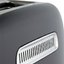 Тостер для двух ломтиков хлеба также позволяет готовить бейглы и сэндвичи. С помощью кнопки отмены можно поднять тосты вручную. Крошки легко удалять с выдвижного поддона. Управление легко осуществляется с помощью кнопок и поворотного регулятора с символами.