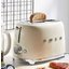 Тостер Smeg TSF01CREU — это классическое сочетание фирменного ретро-стиля и универсального бежевого цветового решения. Такая модель гармонично впишется как в оформление современной кухни, так и в более традиционный интерьер.