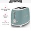 Стильный тостер Smeg имеет компактный корпус на устойчивых ножках, благодаря которым не пошатывается, даже если хлеб выпрыгивает вверх в конце приготовления. Основной материал, из которого изготовлен прибор, — нержавеющая сталь. Его главный оттенок — изумрудный. Простое и понятное механическое управление позволяет быстро разобраться во всех функциях. Простое и понятное электронное управление позволяет быстро разобраться во всех функциях. На корпусе расположены кнопочные переключатели для изменения настроек.