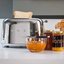 Тостер имеет два слота, каждый из которых рассчитан на приготовление одного тоста. Внутри отделений располагается специальный механизм, который перемещает ломтики в правильное положение, что обеспечивает эффективное и равномерное поджаривание тостов вне зависимости от их размера и формы. Предусмотрены 6 степеней поджарки, также модель оснащена программами подогрева, размораживания и опцией багель, которая позволяет поджаривать тост только с одной стороны.