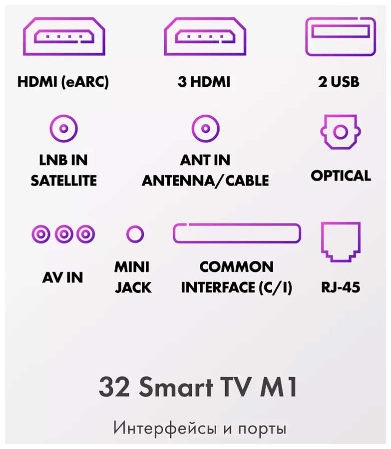 Вход для подключения телевизора к локальной домашней сети, чтобы связать его с компьютером, камерой, мобильным телефоном и т. д. Также с помощью этого разъема можно подключить прибор к интернету.