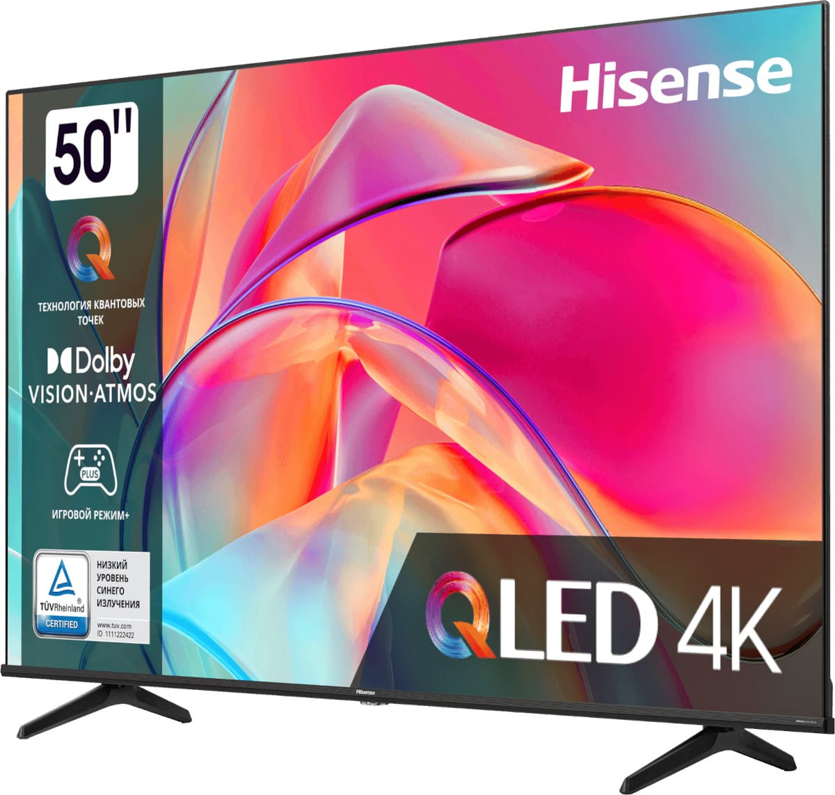 Тип экрана: QLED. Диагональ, ": 50. Цвет: черный. Разрешение, px: 3840x2160. Формат: 16:9.