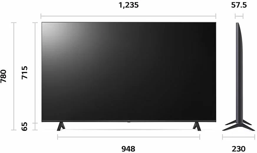 Тип экрана: IPS. Диагональ, ": 55. Цвет: серый. Разрешение, px: 3840x2160. Формат: 16:9.