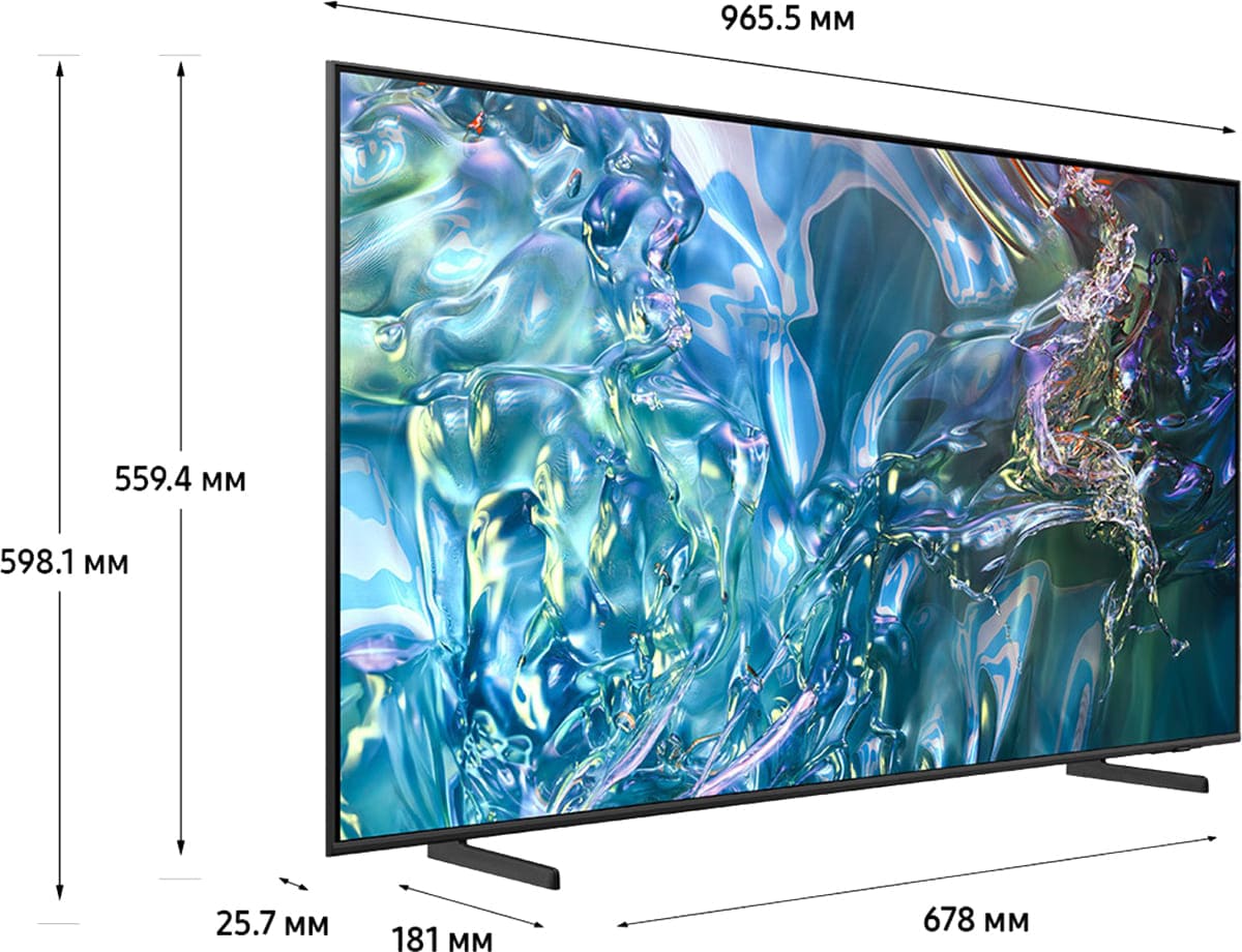 Тип экрана: QLED. Диагональ, ": 43. Цвет: серый. Разрешение, px: 3840х2160. Формат: 16:9.