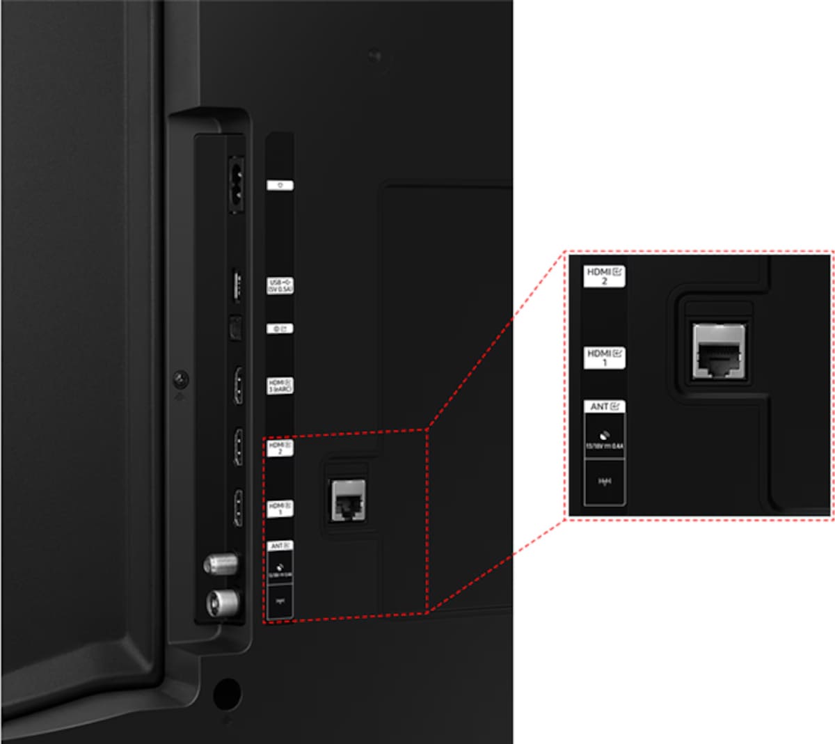 Вход для подключения телевизора к локальной домашней сети, чтобы связать его с компьютером, камерой, мобильным телефоном и т. д. Также с помощью этого разъема можно подключить прибор к интернету.