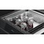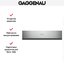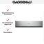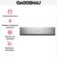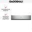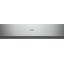 Фронт оттенка металлик органично вписывается в современный интерьер, он устанавливается вровень с мебельными фасадами. Выдвижной ящик не имеет ручек и открывается нажатием. Стандартные габариты — высота 13,7 см, ширина 59 см, глубина 51 см — позволяют монтировать прибор под столешницу либо в вертикальную колонну, например, над духовым шкафом.