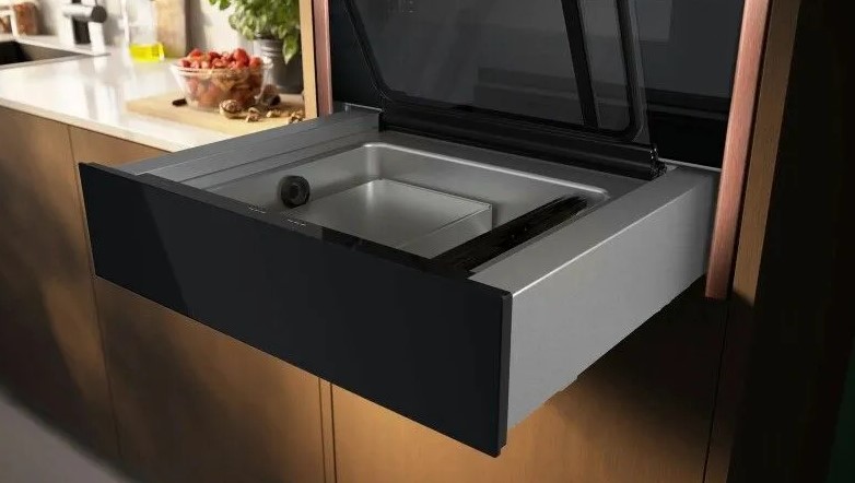 Чтобы открыть рабочую камеру, достаточно нажать на фронтальную панель — не нужны отдельные кнопки или ручки, благодаря чему прибор отлично вписывается в «бесшовный дизайн» наряду с другой встраиваемой техникой. Некоторые модели открываются на всю глубину, некоторые нет — и чтобы полностью открыть рабочую поверхность, нужно выдвинуть ее рукой.