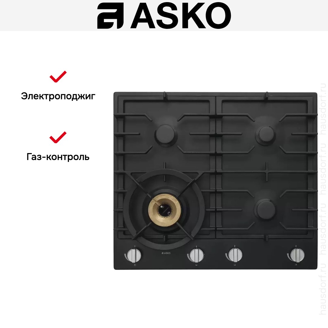Asko HG1666AB — независимая варочная поверхность в антрацитовом цвете. Модель снабжена четырьмя конфорками с газ-контролем, активация которых осуществляется по системе автоматического электроподжига. Съемные чугунные решетки характеризуются высокой прочностью и легкостью в очистке.