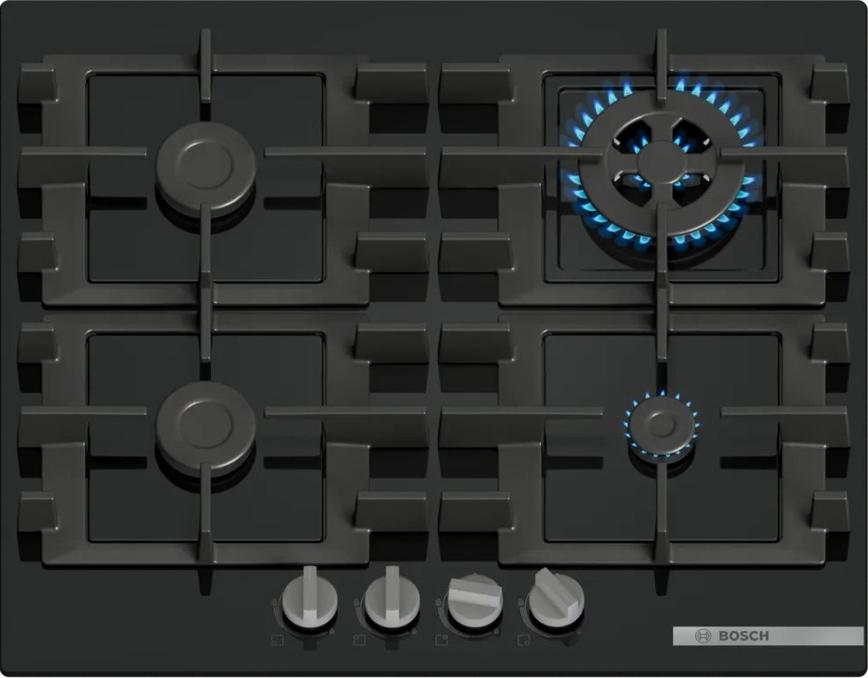 Модель Бош PNH6B6K40 входит в дизайн-линейку: Serie | 4. Цвет — черный. Открытый огонь не страшен ни вашей посуде, ни вам, так как горелки надежно закрыты решетками. Материал самой поверхности: закаленное стекло. Управление этой моделью механическое. Для переключения уровней нагрева, выбора функций используются следующие переключатели: поворотные. Простая система контроля за прибором делают его более универсальным, ведь разобраться сможет кто угодно.