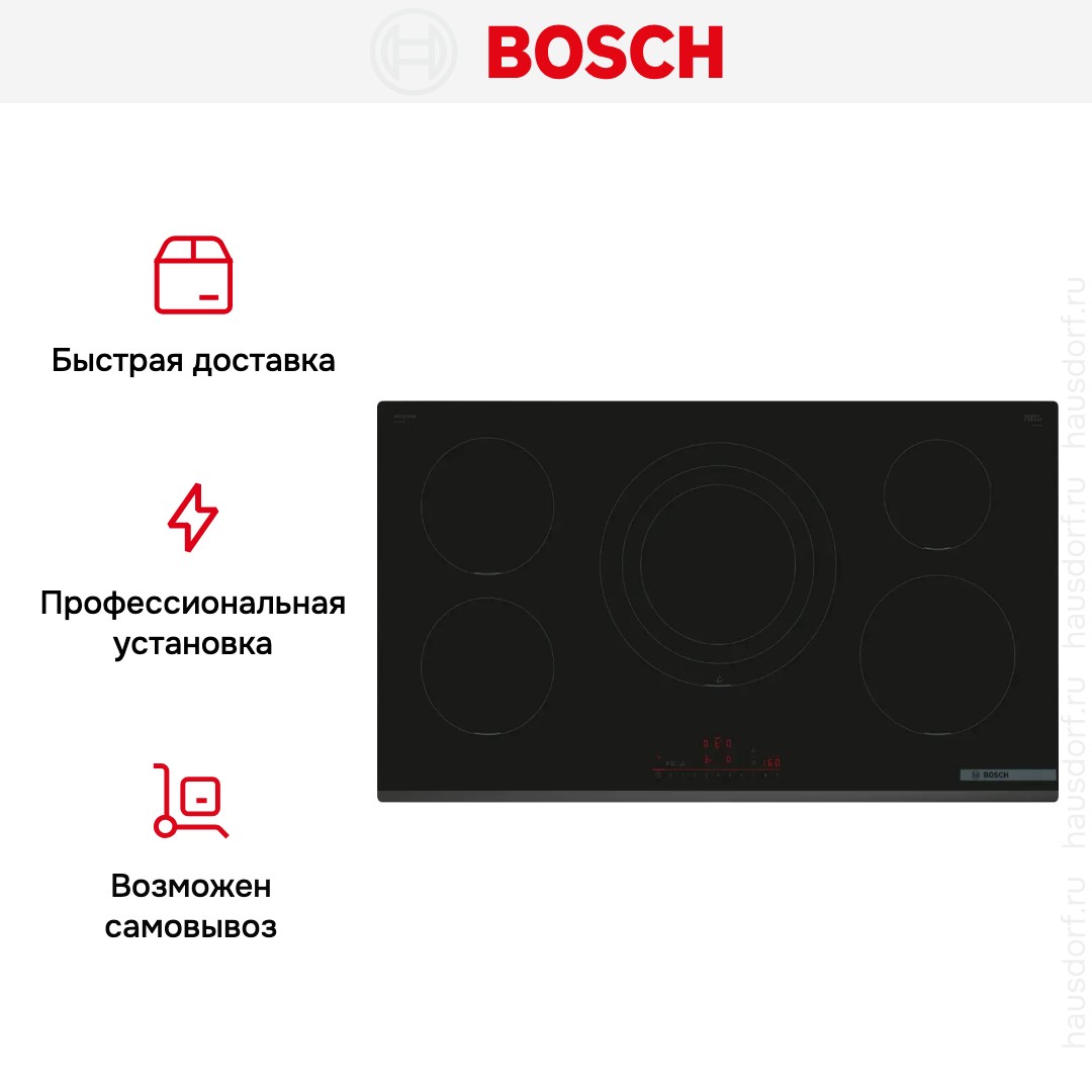 Модель Бош PIV931HC1E входит в дизайн-линейку: Serie | 6. Цвет — черный. Материал самой поверхности: стеклокерамика. Управление этой моделью электронное. Для переключения уровней нагрева, выбора функций используются следующие переключатели: сенсорные/TouchControl. Продвинутая система контроля за прибором делают его современным и отвечающим на главные запросы покупателя.