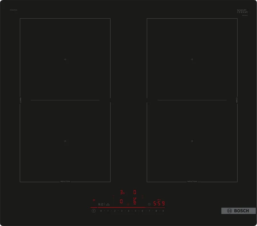 Модель Бош PVQ61RHB1E входит в дизайн-линейку: Serie | 6. Цвет — черный. Материал самой поверхности: стеклокерамика. Управление этой моделью электронное. Для переключения уровней нагрева, выбора функций используются следующие переключатели: сенсорные/TouchControl. Продвинутая система контроля за прибором делают его современным и отвечающим на главные запросы покупателя.