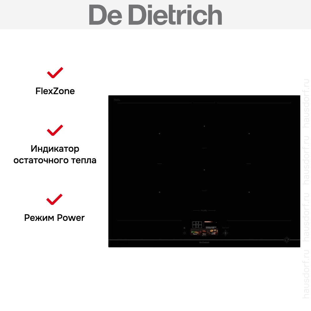 Особенности панели конфорок, на которые стоит обратить внимание: Induction, FlexZone. Некоторые конфорки можно использовать не только по отдельности, но и как общее пространство, внутри которого расставлять посуду, как вам удобно.