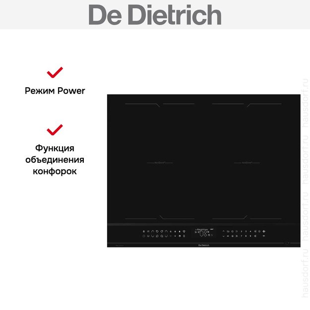 Модель Де Дитрих DPI4441BT входит в дизайн-линейку: Infinite Black. Цвет — черный. Благодаря отсутствию рамки она отлично впишется в интерьер и не займет лишнее место на столешнице, которое можно использовать для работы. Материал самой поверхности: стеклокерамика. Управление этой моделью электронное. Для переключения уровней нагрева, выбора функций используются следующие переключатели: сенсорные/TouchControl. Продвинутая система контроля за прибором делают его современным и отвечающим на главные запросы покупателя.