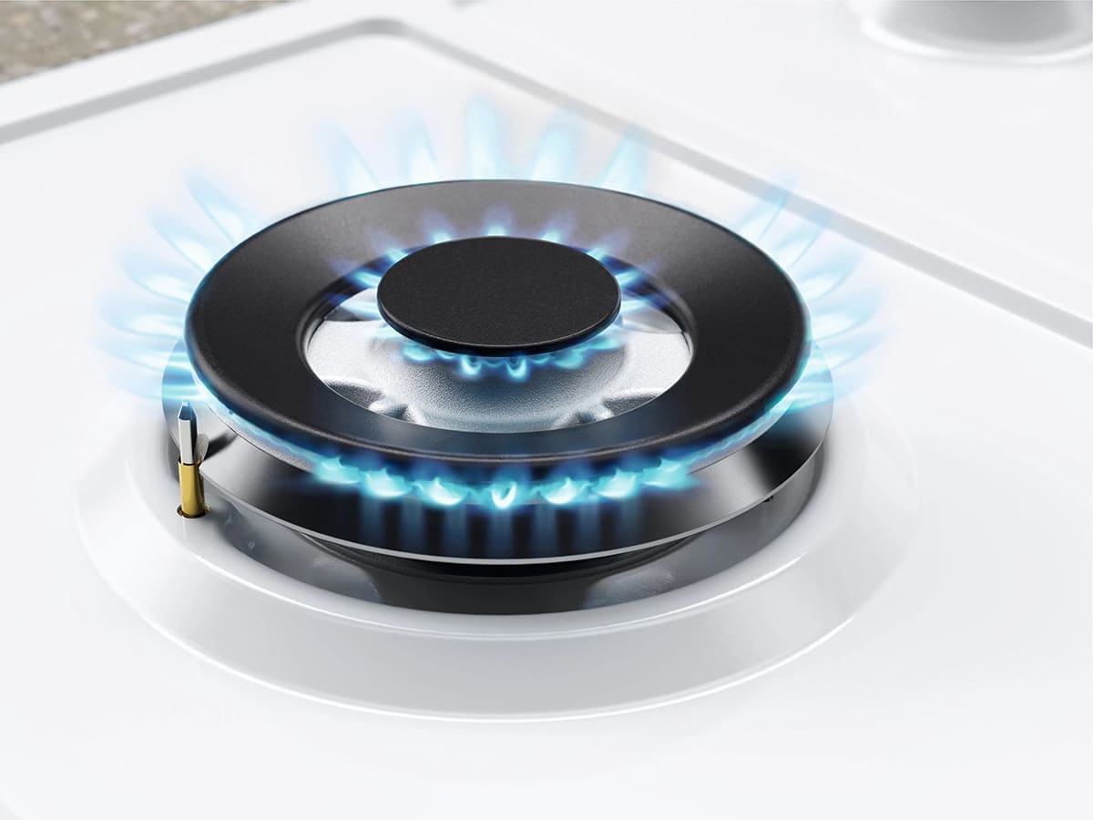 Газовая горелка с пламенем в два ряда. Благодаря этому дно кастрюли или сковороды прогревается равномерно, нагревается быстрее.