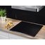 Хорошей альтернативой рамке является металлический профиль, который обычно устанавливается только спереди или сбоку. Он также не позволяет жидкости стекать на столешницу, но не «съедает» полезную площадь. Что касается варочных панелей без рамки, неизменной популярностью пользуются модели со скошенным краем. Такая обработка называется фацетной — внешняя сторона панели имеет огранку под углом 45 градусов. Такая панель очень легко чистится и эффектно выглядит, а современные методы огранки защищают края от сколов.