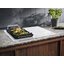 Хорошей альтернативой рамке является металлический профиль, который обычно устанавливается только спереди или сбоку. Он также не позволяет жидкости стекать на столешницу, но не «съедает» полезную площадь. Что касается варочных панелей без рамки, неизменной популярностью пользуются модели со скошенным краем. Такая обработка называется фацетной — внешняя сторона панели имеет огранку под углом 45 градусов. Такая панель очень легко чистится и эффектно выглядит, а современные методы огранки защищают края от сколов.