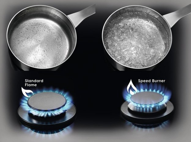 При включении конфорки создается горючая смесь газа с атмосферным воздухом. Рассекатель горелки распределяет эту смесь для равномерного нагрева дна посуды. Смесь поджигается при помощи автоматического механизма, спичек или зажигалки. Подачу газа и регулировку ее интенсивности осуществляют поворотом переключателя: предварительно должен быть открыт также централизованный кран включения на трубе газоснабжения.