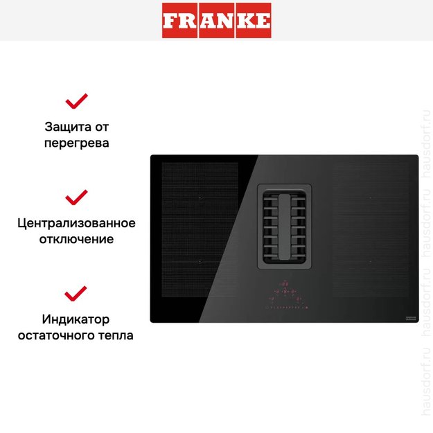 Модель Франке FMA 839 HI входит в дизайн-линейку: Maris. Цвет — черный. Материал самой поверхности: стеклокерамика. Управление этой моделью электронное. Для переключения уровней нагрева, выбора функций используются следующие переключатели: сенсорные/TouchControl, сенсорный слайдер/TouchSlider. Продвинутая система контроля за прибором делают его современным и отвечающим на главные запросы покупателя.