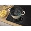 Варочная панель работает на индукционном нагреве — это значит, что повышается температура непосредственно посуды, в которой готовится блюдо. Таким образом промежуточная ступень с предварительным нагревом конфорки пропускается — сокращается время, повышается безопасность. Количество конфорок в этой модели: 4.