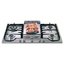 Удобная широкая варочная панель с роскошной центральной конфоркой «Fry-top». Фронтальное механическое управление с поворотными переключателями чрезвычайно эргономично вписывается практически в любой кухонный интерьер. Газовой тягой снабжены все пять конфорок, аккуратно размещенных на панели цвета нержавеющей стали