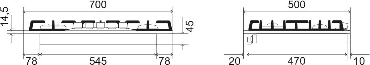 Стандартная ширина устройства составляет около 59–60 см: таковы наиболее востребованные четырехконфорочные модели. Подобный размер облегчает встраивание варочной панели в стандартную кухонную столешницу.