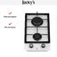 Двухконфорочные панели шириной около 30 см часто можно комбинировать с другими в дизайне «Домино». Такие панели нередко выбирают покупатели, которые пользуются для приготовления пищи другой техникой — мультиварками, духовками, СВЧ-печами. Конфорки при этом могут располагаться как в два ряда, так и в один, а форма панели может быть как привычной прямоугольной, так и овальной или в виде капли.