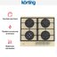 Korting HGG 6722 CTB — газовая варочная панель типа «газ на стекле». Благодаря ширине 59 см эта модель с четырьмя конфорками различной мощности встраивается в стандартную кухонную тумбу. Огнеупорное стекло бежевого цвета подойдет для интерьеров в классическом стиле. Для размещения посуды предназначены раздельные решетки из чугуна. Справа в передней части находится механическая панель управления с поворотными переключателями. Руокятки из металла не нагреваются во время работы. Варочная панель Кортинг HGG 6722 CTB оснащена электроподжигом и системой «газ-контроль», гарантируюшей безопасность использования.