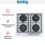 Механические поворотные переключатели цвета нержавеющей стали с металлическими рукоятками обеспечивают бесступенчатую регулировку интенсивности пламени. Зажечь пламя при помощи электроподжига можно также поворотом рукоятки. Модель Кортинг HGG 6825 CTW оснащена системой безопасности «Газ-контроль», прекращающей подачу газа при случайном угасании пламени. Раздельные чугунные решетки для установки посуды можно мыть в посудомоечной машине. Варочная панель может подключаться к газу в баллонах при помощи форсунок, которые также входят в комплект.