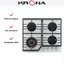 Выбор газовой варочной панели чаще всего обусловлен тем, что в частный дом или квартиру проведен именно газ в качестве обогрева. Работать с этой моделью довольно просто, так как мощность нагрева видна невооруженным взглядом — по силе огня в горелке. Количество конфорок в этой модели: 4. Горелки с тройной короной имеют несколько ступеней нагрева — в зависимости от них образуется несколько кругов пламени.