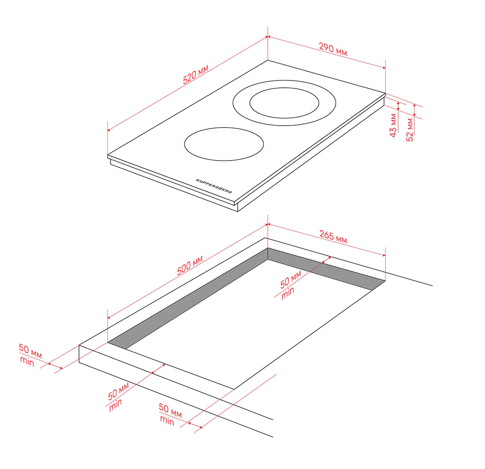 Габариты изделия составляют всего 5,2 см в высоту, 29 см в ширину и 52 см в глубину, что делает его идеальным выбором для небольших кухонь, дачных домиков или студий. Несмотря на скромные внешние размеры, панель предлагает достаточное количество конфорок для повседневного приготовления. Для корректного встраивания требуется ниша шириной 27 см и глубиной 50 см, что обеспечивает плотную посадку, эстетичную интеграцию в столешницу и необходимую вентиляцию.