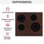 Варочная панель на четыре конфорки — классический вариант для 90% кухонь. Изюминка данной модели Kuppersberg — цветовое решение. Она выполнена в бронзовом оттенке с имитацией текстуры, хотя покрытие абсолютно гладкое. Внешняя панель сделана из прочной и надежной стеклокерамики Shott Ceran, которая давно зарекомендовала себя на рынке бытовой техники.