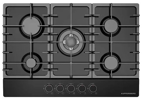 Выбор газовой варочной панели чаще всего обусловлен тем, что в частный дом или квартиру проведен именно газ в качестве обогрева. Работать с этой моделью довольно просто, так как мощность нагрева видна невооруженным взглядом — по силе огня в горелке. Количество конфорок в этой модели: 5.