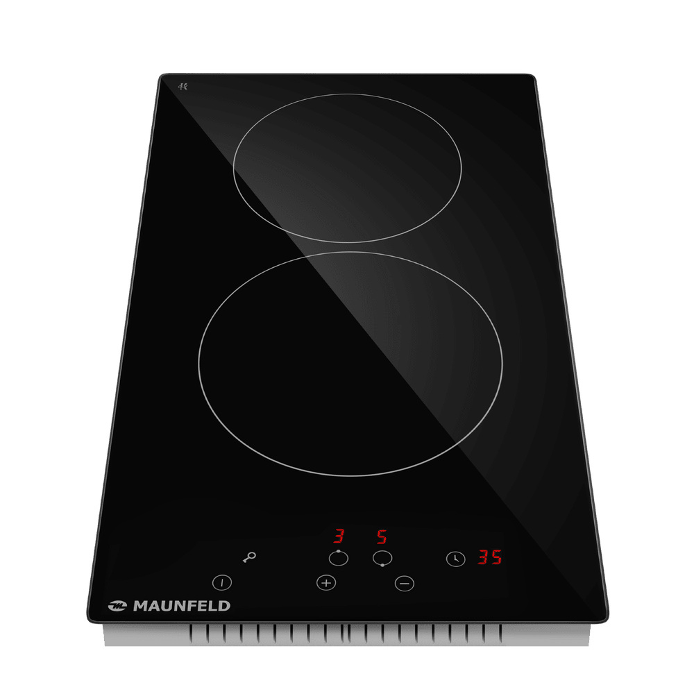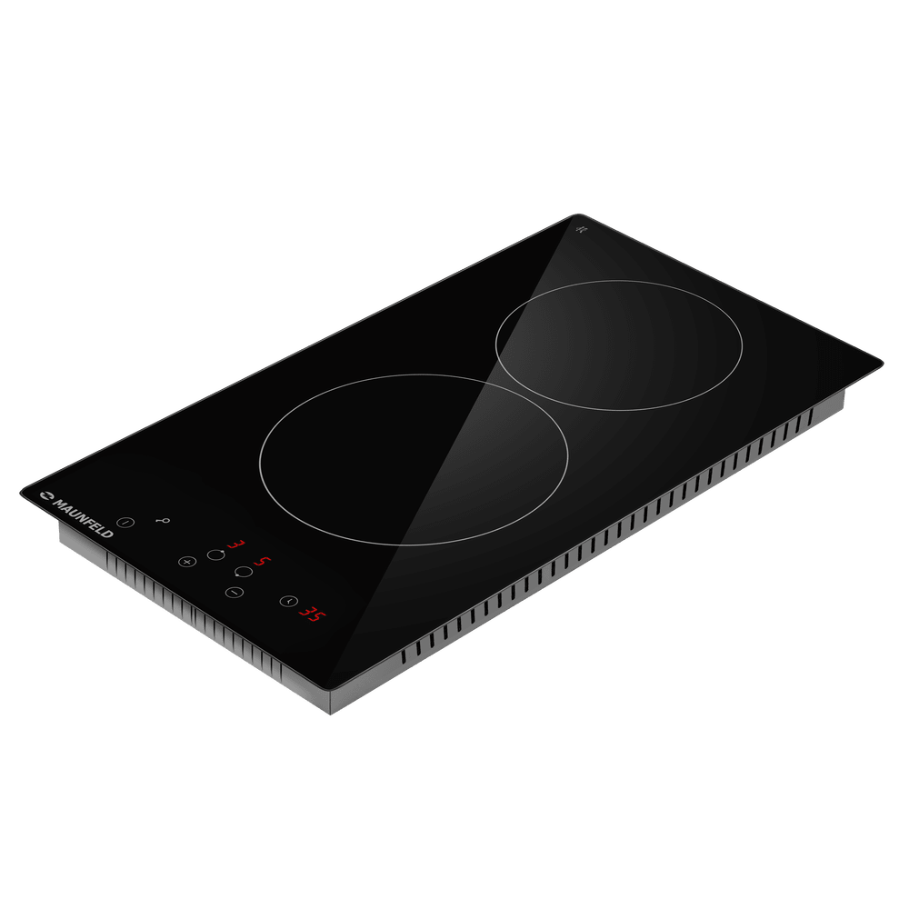 Двухконфорочные панели шириной около 30 см часто можно комбинировать с другими в дизайне «Домино». Такие панели нередко выбирают покупатели, которые пользуются для приготовления пищи другой техникой — мультиварками, духовками, СВЧ-печами. Конфорки при этом могут располагаться как в два ряда, так и в один, а форма панели может быть как привычной прямоугольной, так и овальной или в виде капли.